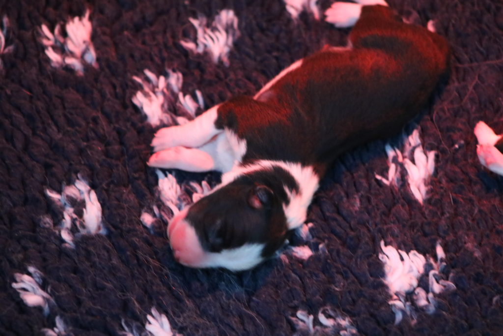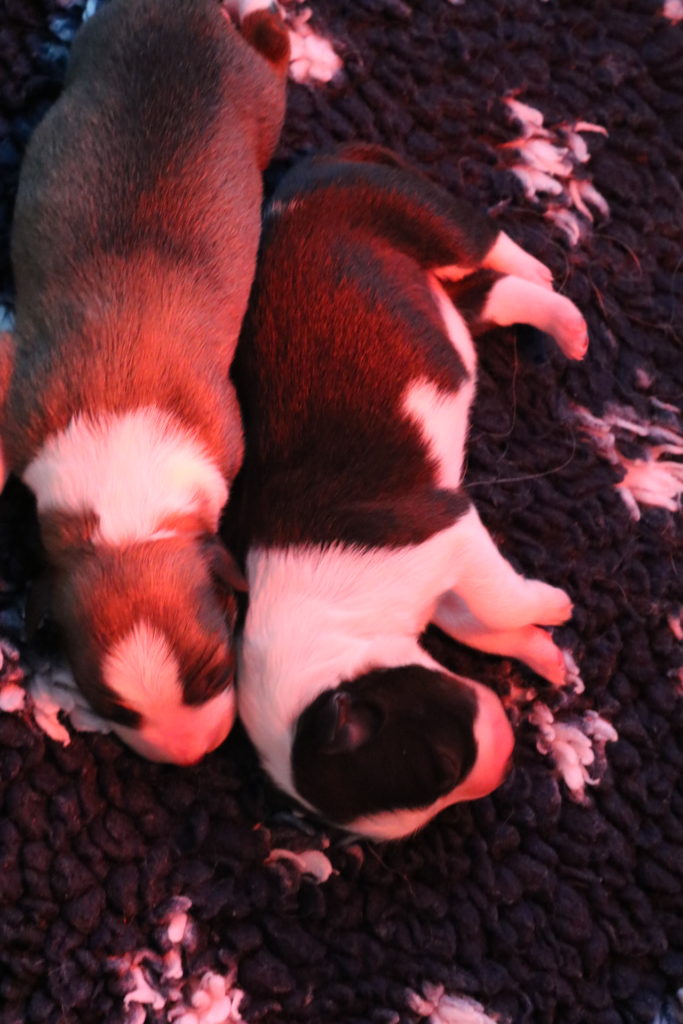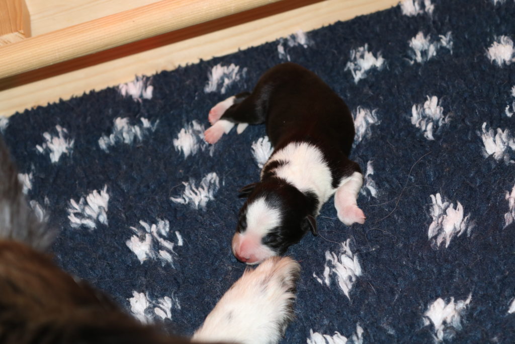 Le dernier chiot est né à 13 h 03, également un mâle de 460 grammes, et également brun et blanc comme grand-maman Enjy.